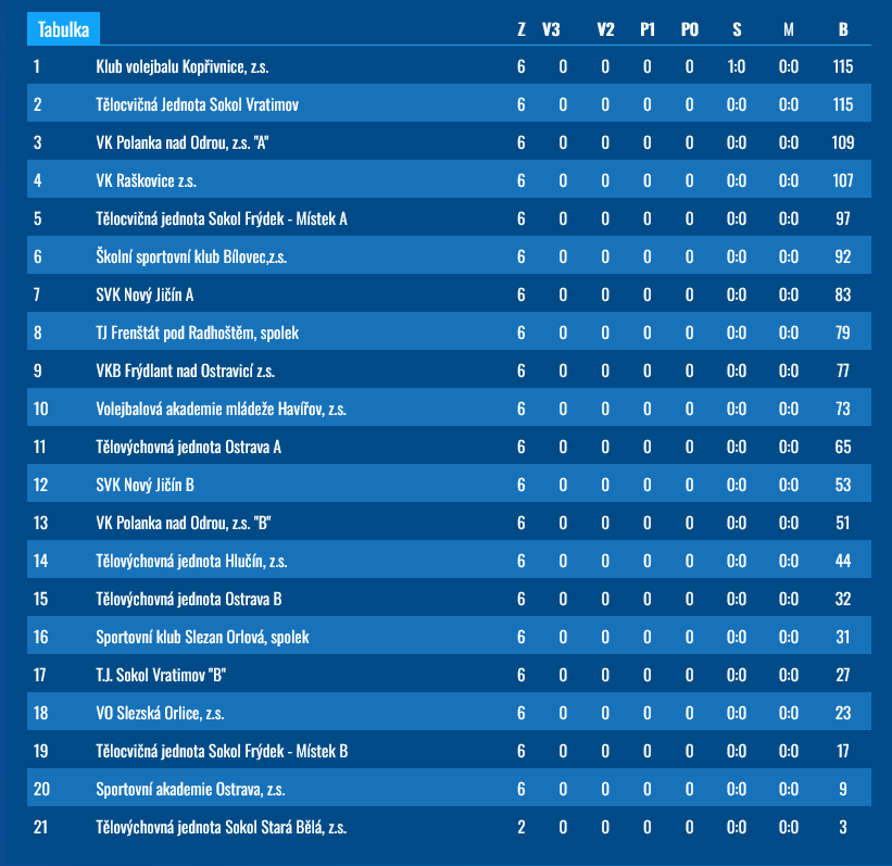 Konečná tabulka KP MS-U14Z v sezóně 2025/26